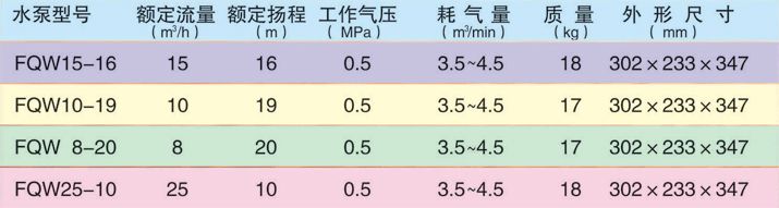 特點: FQW(原BQF型)礦用風動潛水泵,該泵以壓縮空氣為動力,采用離心泵結(jié)構(gòu)形式。具有體積小,重量輕,結(jié)構(gòu)簡單,安裝維修方便,在含有瓦斯與煤塵的礦井中使用安全可靠,是一種先進的風動排水設備。